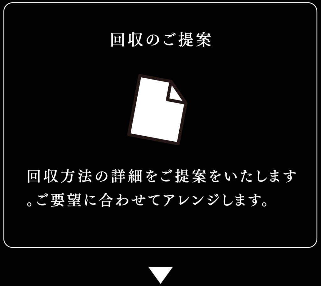 回収方法の詳細をご提案いたします。ご要望に合わせてアレンジします。