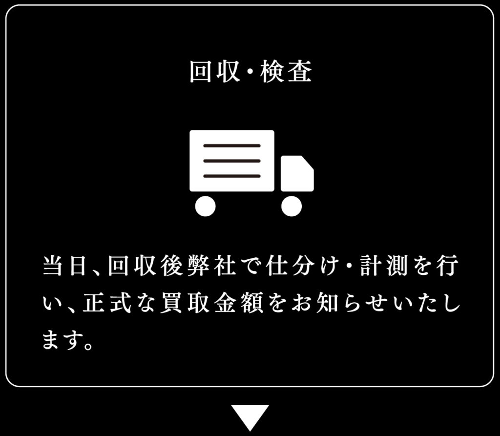 当日、回収後弊社で仕分け・計測を行い、正式な買取金額をお知らせいたします。